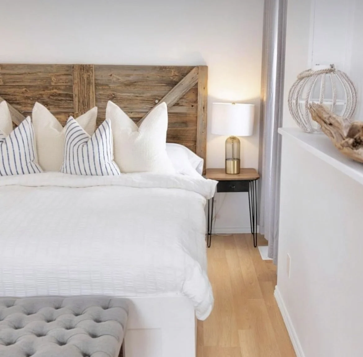 Our primary bedroom, located on the main floor has a large open space, desk area and luxurious king-size bed.